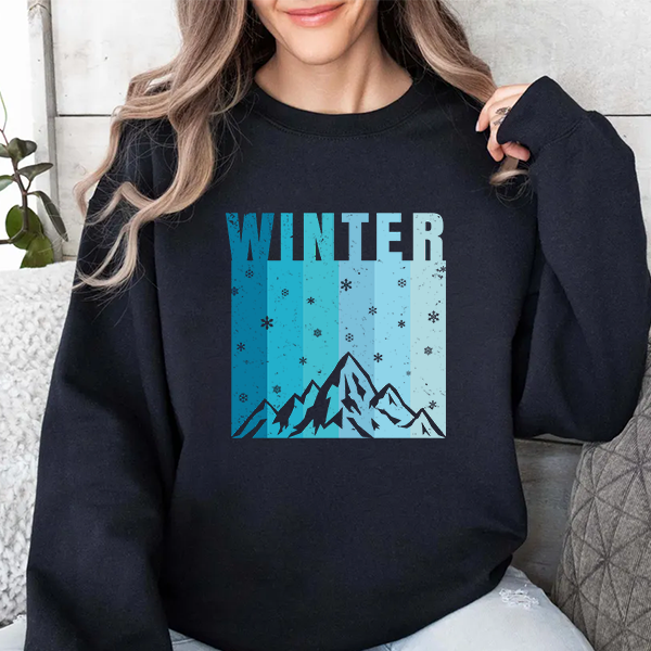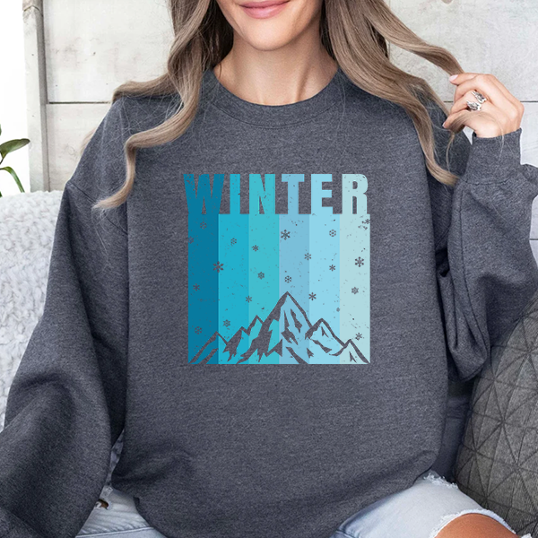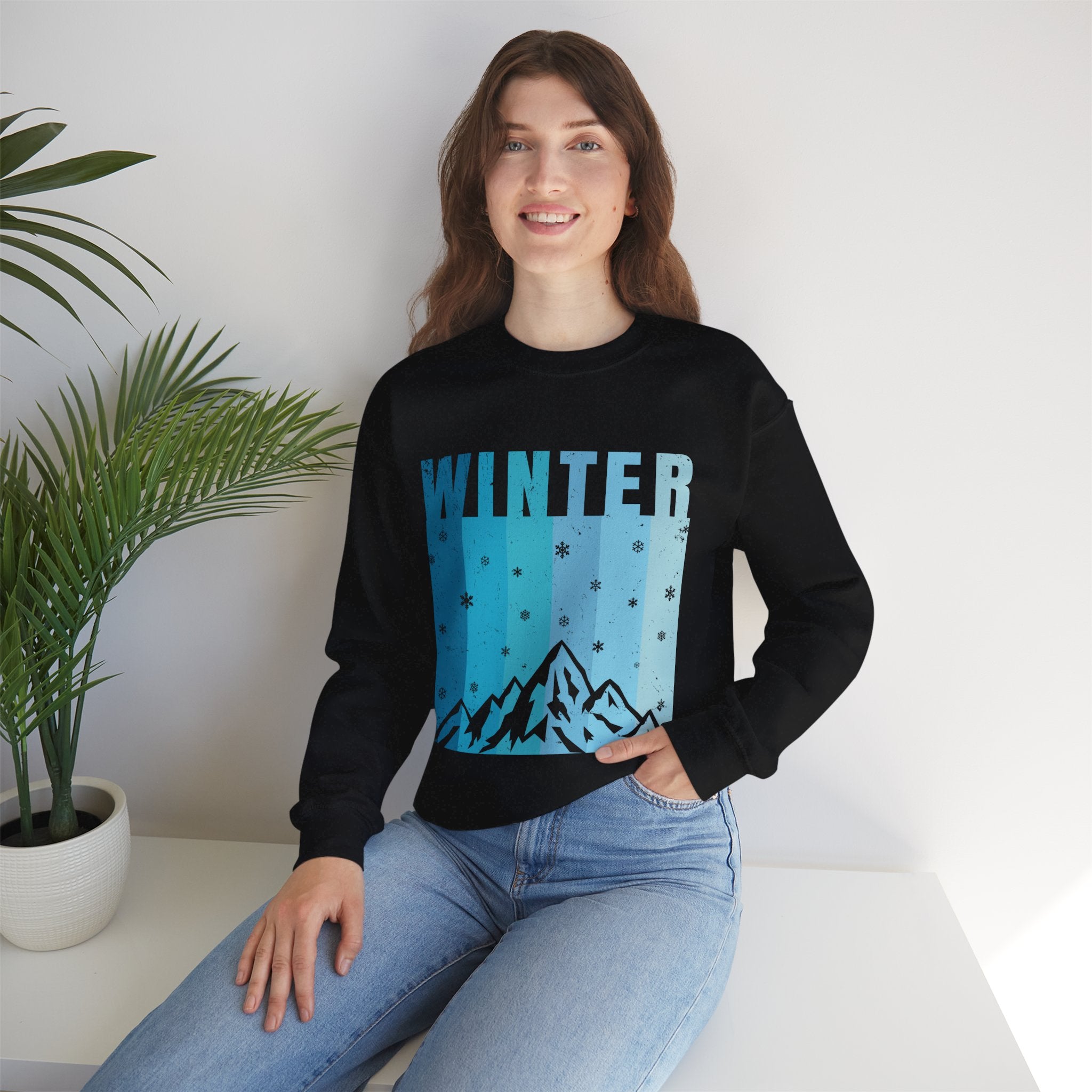 Winter Mountain Sweatshirt — 'WINTER' Snowy Peak Crewneck